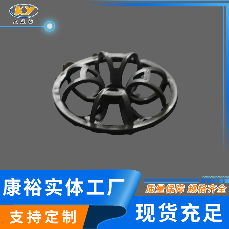 塑料花環(huán)填料早是由美國A.J.Teller于1954年研制開發(fā)出來的,故而常稱之為泰勒花環(huán)(TellerRosette)。由于填料的空隙處能有較高的持液量,可使塔內(nèi)液體的停留時間較長,從而增加了氣液兩相的接觸時間,提高了填料的傳質(zhì)效率?!』ōh(huán)填料也稱梅花環(huán)填料塑料花環(huán)填料是由12個小圓環(huán)按徑向排列而組成的一個大扁球體,很類似于一個螺旋形彈簧首尾相接繞成的一個圓球體。有的小圓呈A字;有的在小圓和大圓邊沿還帶有齒;有的外圍沒有大圓圈,只有里面的小圓組成等,客戶可根據(jù)各自的要求訂購不同種類的花環(huán)。